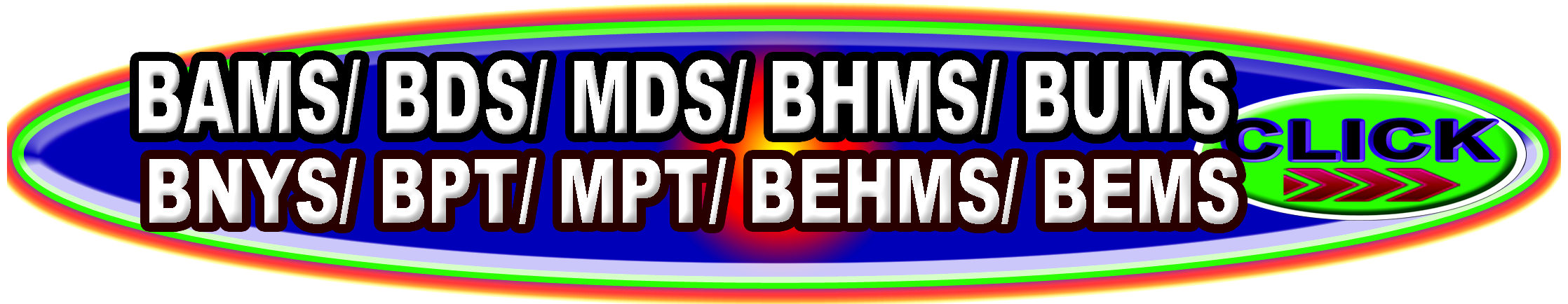 CLICK EACH || M.B.B.S. (A.M.) /    CMS-ED / C.M.S.E.D / C.M.D.-ED M.B.B.S.(INDO ALLOPATH) M.B.B.S. (BIO.) B.A.M.S. B.A.M.S-A.M. B.E.M.S. Or B.E.H.M.S. (Electro - Homoeopath) B.H.M.S. / B.U.M.S. / B.N.Y.S. / B.D.S. / B.D.S-A (Dental)